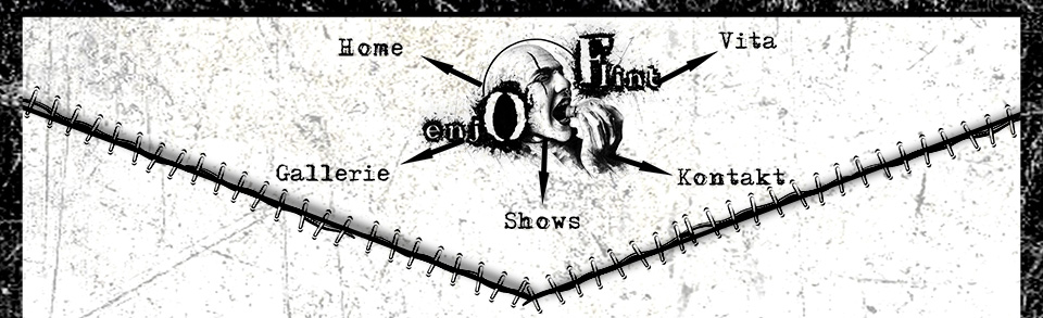 Enjo Flint ist ein clownesker Freak, der Schmerz und Absurdität selbst in die Hand nimmt und in die Naivität des Wahnsinns sein eigenes Fluftschloss schafft. Provokation und Selbstironie sind seine kritischen Begleiter.